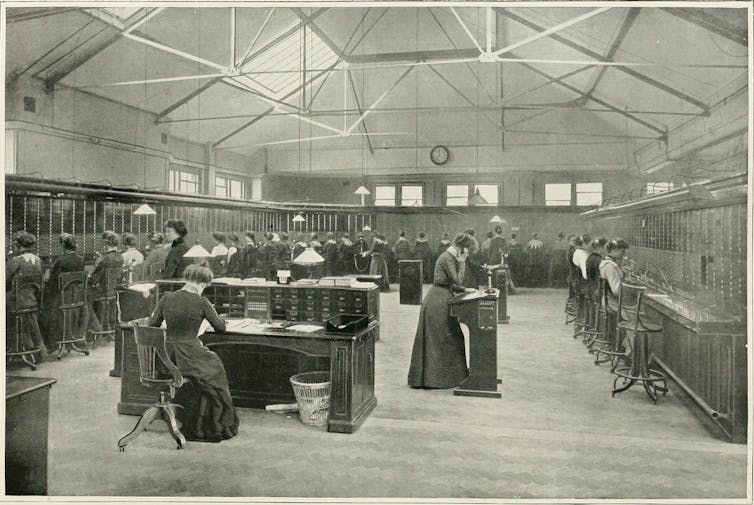 Todos tenemos en mente, de haber visto en multitud de películas, a las telefonistas, típicamente mujeres, que se encargaban de conectar los cables de la centralita en la posición correcta que permitiera comunicarse a dos personas concretas, situadas a ambos lados de la línea. El número de líneas estaba limitado y eran las telefonistas las encargadas de priorizar unas llamadas y postergar otras. Pasaron unos años de la invención del teléfono hasta que se fundó en España la Compañía Telefónica Nacional de España (CTNE) en 1924.