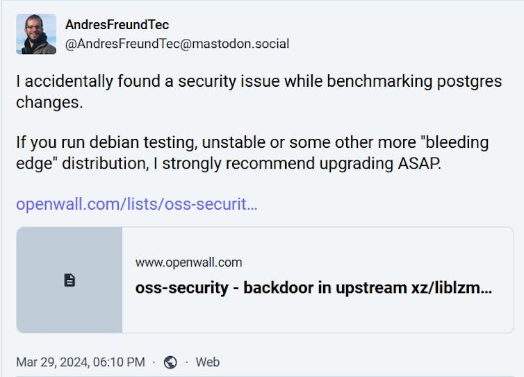 Un desarrollador de Microsoft, Andrés Freund, notó que los inicios de sesión eran más lentos de lo habitual: 500 ms más lentos. Estos fallos le hicieron sospechar y seguir buscando hasta encontrar el error.